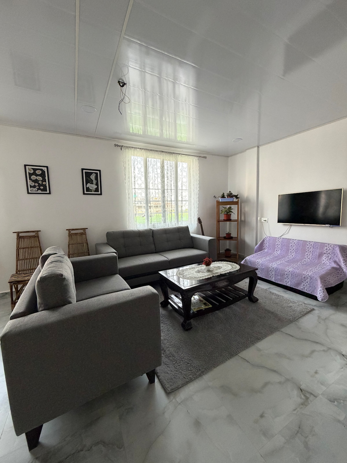 Welcome to our cozy and spacious three-bedroom apartment, perfect for families, groups, or travelers seeking comfort and convenience. Each bedroom is beautifully wooden-furnished, neat, and designed to give you a warm, homely feel. The apartment features a functional kitchen where you can prepare your favorite meals, and a spacious living room that’s ideal for relaxing, chatting, or enjoying some quiet time. One of the bedrooms comes with an attached toilet and bathroom for your convenience.