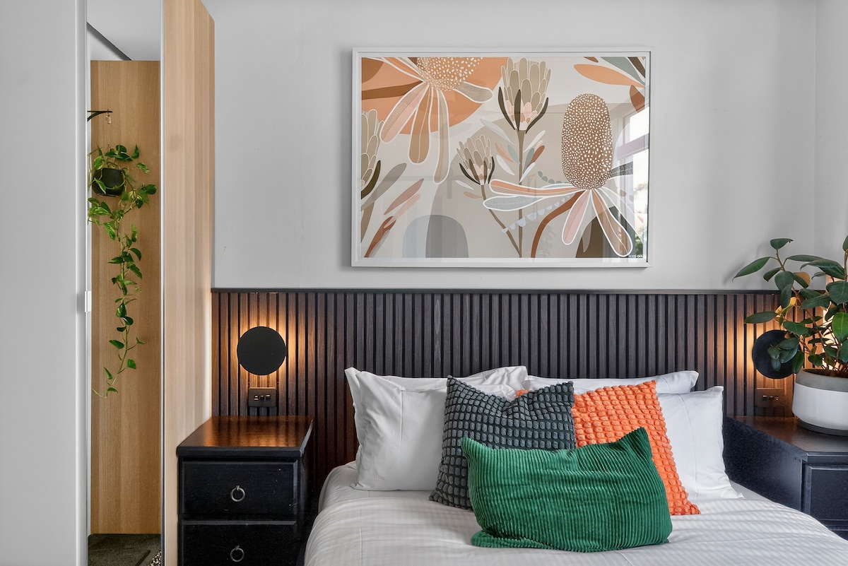 This delightful, sun-filled apartment is the perfect retreat. Its edgy design is matched by surrounding cafes and restaurants; it is quintessential Darlinghurst inside & out. Minutes from Oxford Street, St Vincent’s Hospital and King Cross station and only minutes more to the City, Circular Quay and Bondi Beach. Equipped with Smeg appliances, 65-inch smart TVs and a gorgeous outlook over Darlinghurst’s signature art deco homes, it’s the ideal base for all of your relaxing and adventuring needs.