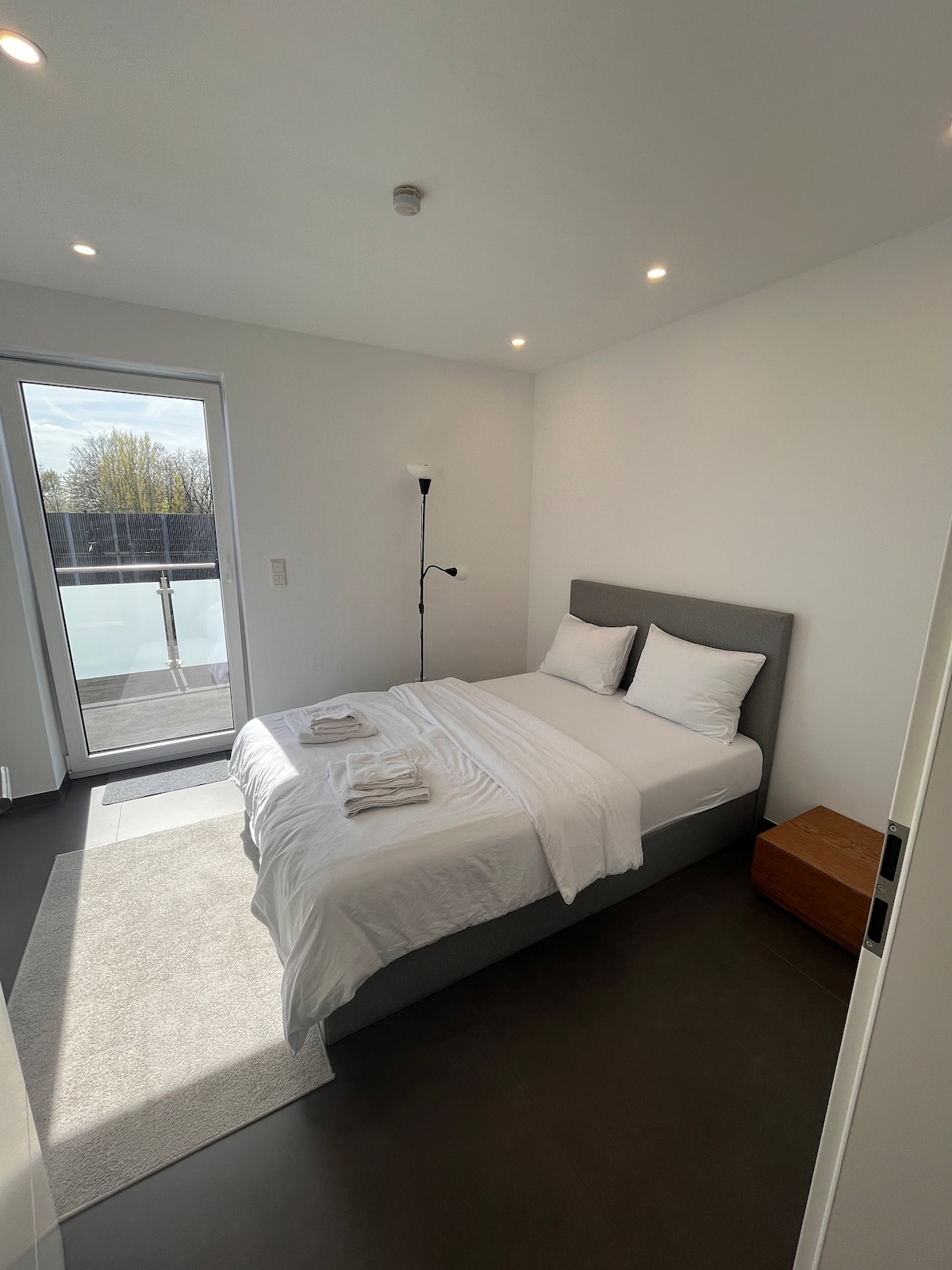 Panoramic 60 m² apartment – for up to 4 guests • King-size bed, sofa bed, folding bed (on request), baby crib • Fully equipped kitchen: stove, oven, kettle, coffee machine, dishwasher, fridge, TV • High-quality linens, towels, coffee & tea • Large terrace with sun lounger, nature view Great location: • 5 min by car / 30 min walk to Idstein center • Hiking trails start at the door • 20 min to Frankfurt Airport & Wiesbaden • 2 km to autobahn • Nearby playground & top grill restaurant