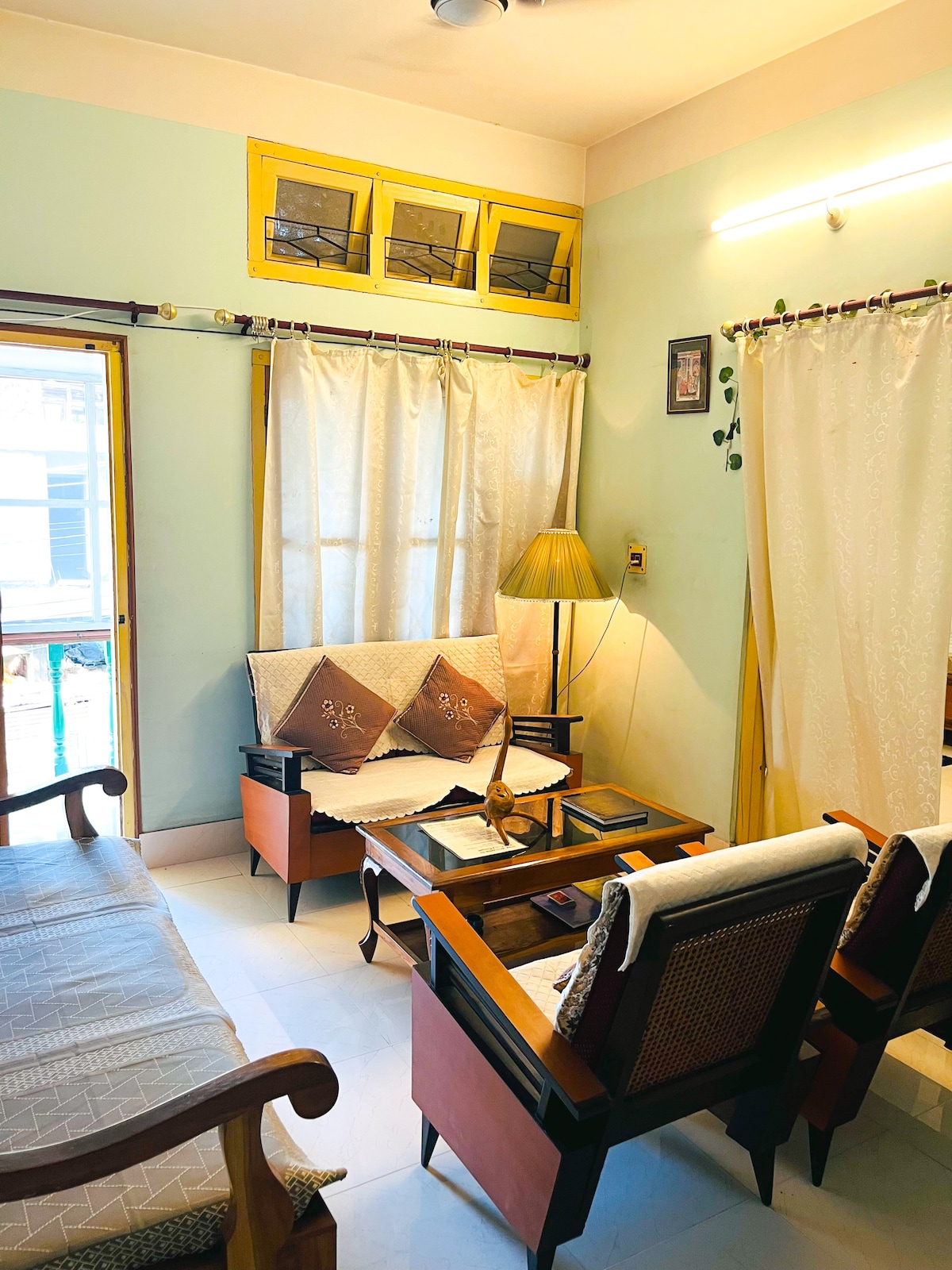 Welcome to The Green Haven, a cozy yet modern retreat in Guwahati. Newly renovated and sparkling clean, this green-themed apartment offers a relaxing stay for families. Conveniently located, yet peaceful, it's the perfect spot to unwind after exploring the city. Experience comfort, style, and serenity all in one place! Residential Neighbourhood- Unmarried coupled not allowed. Distance from Airport- 28kms Distance from Kamakhya- 9kms Vehicle Rentals available on request.