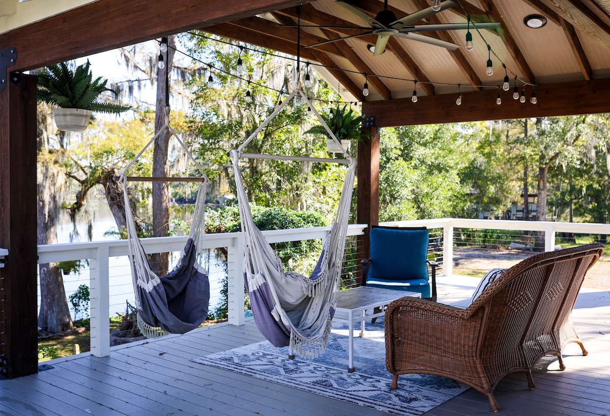 Escape into the enchanting embrace of nature with our one-of-a-kind Swamp Treehouse emerged in the Louisiana swamps. Step inside to discover a cozy retreat where contemporary comforts meet the rustic charm of the wilderness as you gaze out through panoramic windows at the serene surroundings. Immerse yourself in the tranquil sounds of the swamp as you unwind on the spacious deck or take a leisurely stroll along the elevated walkway, soaking in the sights and sounds of this southern paradise.