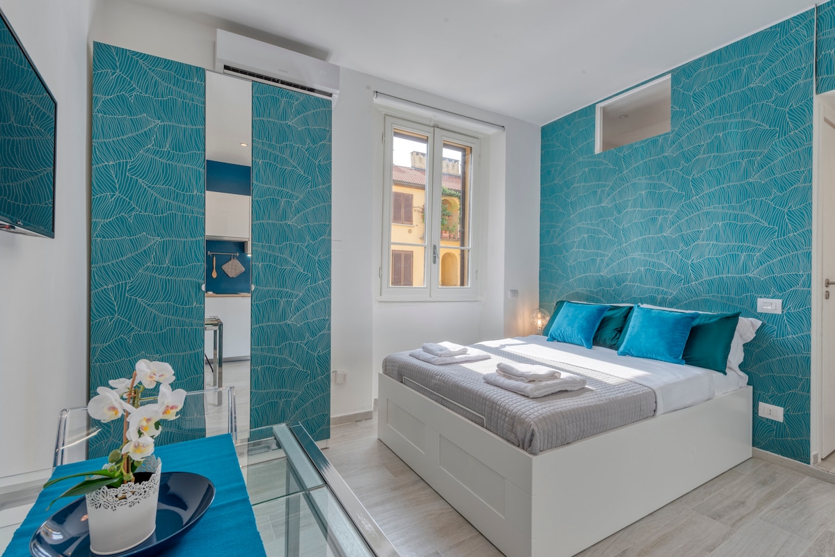 In the heart of the Navigli district, my 540 sq.ft. flat very meticulously renovated and decorated with the utmost attention to detail. Warm and comfortable, it's located at the beginning of the pedestrian area that leads to the Naviglio Grande. Characteristic, historical and world-famous neighborhood, it's dotted with restaurants, cafes, bars, interesting shops, art galleries...anything your heart desires. Well served by public transportation (metro & trams) as well as bike-sharing stations.