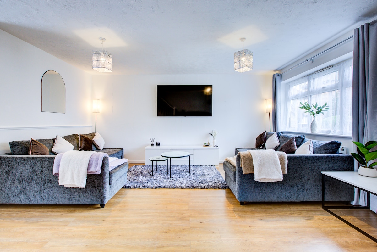 ●●●We have 2 free parking spaces●●● Welcome to our 3-bedroom spacious home located in Dartford, near London. This great space is perfect for remote working and contractors conveniently accommodating up to six people. Bluewater shopping mall, lakeside shopping mall and Dartford train Station/town centre are nearby. The master suite has an en-suite bathroom providing privacy. We ensure that your stay is a memorable one.