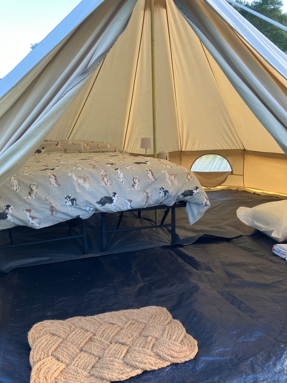 Completely isolated bell tent set on its own in a large fenced off area of the field, All WC and kitchen facilities are private and only for you and your family. No sharing with others. Priory Barn is situated just a few miles outside chipping norton near heythrop, we are a small holding nestled almost in the bottom of the valley. Our bell tent is the perfect escape to tranquility and we have set up camp so you don’t have to, just turn up and relax with every thing you need provided.