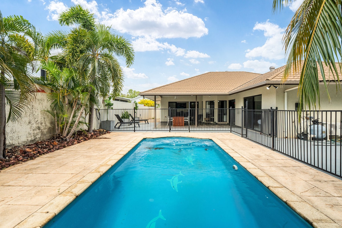 Experience Top End living in this comfy 3BR home with a large fully fenced yard- perfect for children and furry friends! A private saltwater pool provides an escape from the tropical heat. The equipped kitchen is ideal for shared meals, while air-con living areas provide year-round comfort. Enjoy outdoor dining, a BBQ, and established fruit trees in a quiet residential neighbourhood. With private access and double driveway this home offers a relaxed, authentic Darwin stay — just like a local!