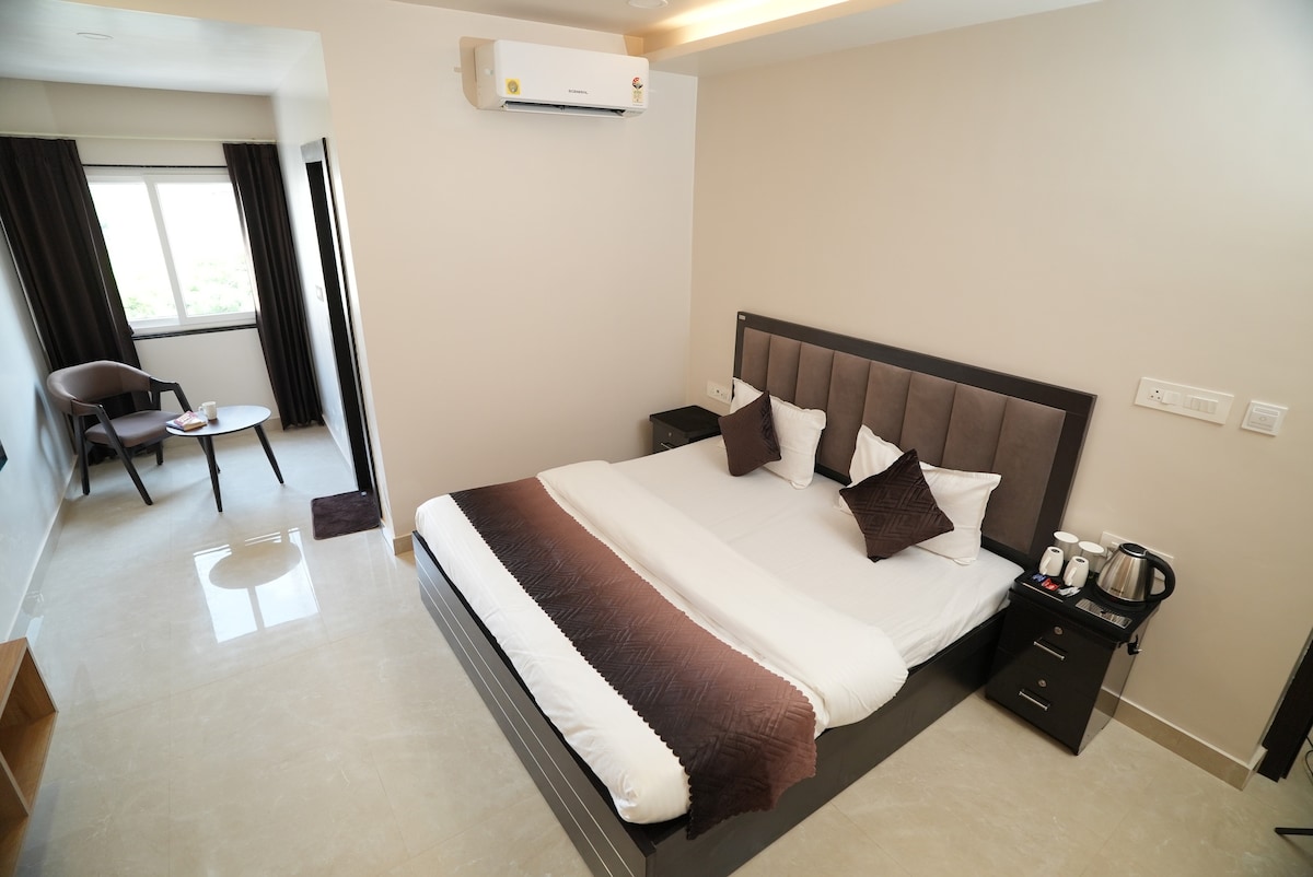 Stunning Hotel, where every detail is designed for ultimate relaxation and indulgence. The spacious rooms, adorned with elegant furnishings, offer breathtaking street views . Guests can unwind at near by Ayurvedic spa, enjoying rejuvenating treatments inspired by local traditions. Fine dining options feature gourmet cuisine crafted by renowned local chef served with exquisite. As the sun sets, the sound of gentle temple bells creates a tranquil ambiance, making it the perfect place.