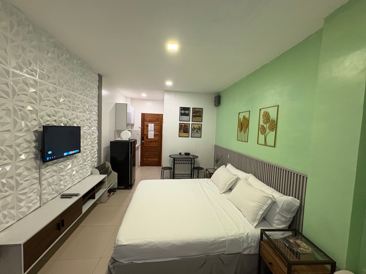 Looking for a cozy, minimalist spot for work or play? Our 17 sqm unit is perfect for business stays with its strong Wi-Fi, and just right for a relaxing city getaway. Heads up: being along the main road means some traffic noise, but the comfort, convenience, and city energy make it all worth! * Cozy Minimalist design * Unlimited Wifi use : 250 Mbps PLDT * Free Netflix & You Tube * Free use of card and board games * Cotton Linen&Towels * Kitchenette * 32-Inch TV * 1 HP Smart AC split type