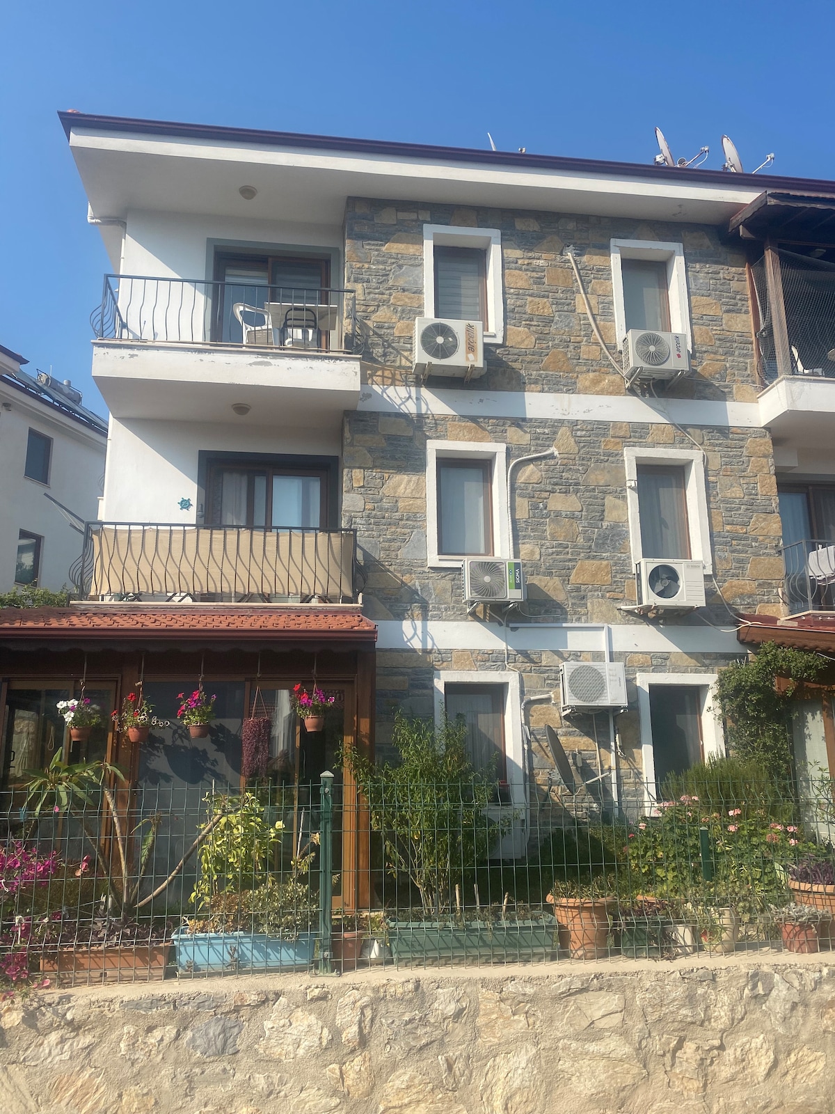 Toplamda 4 dairenin bulunduğu, 2 yıllık yeni bina. Giriş kattaki 2 adet 1+1 dairemizde misafirlerimizi ağırlıyoruz. Üst katlarda yer alan dubleks daireler kiralanmamaktadır Yatak odasında çift kişilik yatak, salonda ise 2 adet açılır çekyat bulunmaktadır. Her iki odada da klima mevcuttur. Daireler Datça merkezde, ferah ve çok sessiz bir bölgede yer almaktadır. Kumluk ve hastane altı plajlarına yürüyerek 7-8 dk mesafededir. Datça Otogarı’na ise 500 metre uzaklıktadır.