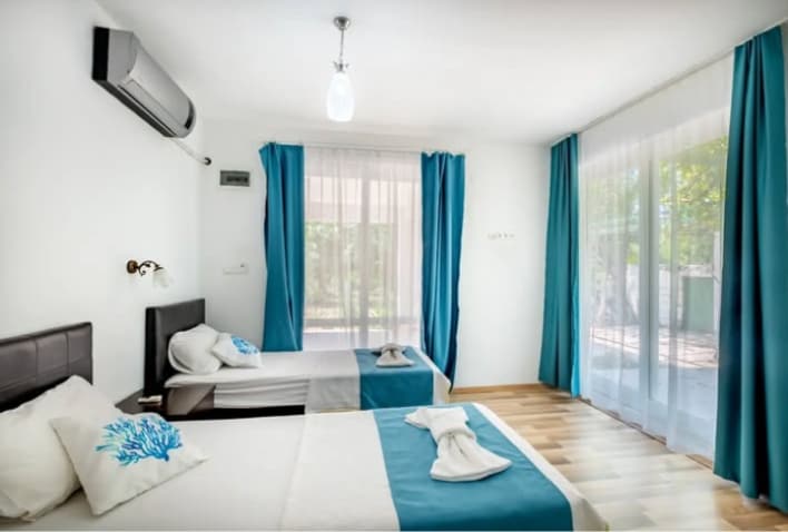 Villa tipi yerimiz Palamutbükü'nde liman karşısında denize 100 metre mesafededir. Plajlara yakındır. 2 adet koy bulunmaktadır. 7 kişi rahatlıkla kalabilir. Ev önünde çocukların rahatça oynayabileceği alanlar da vardır. isteğe bağlı olarak, kalabalık aileler için Villâmıza ek olarak , villâmızın arkasında bulunan 1 oda 1 salon ile birleştirilebilir, fiyat olarak ayrıca hesaplandırılır. 5324943739 numaralı telefondan ulaşabilirsiniz