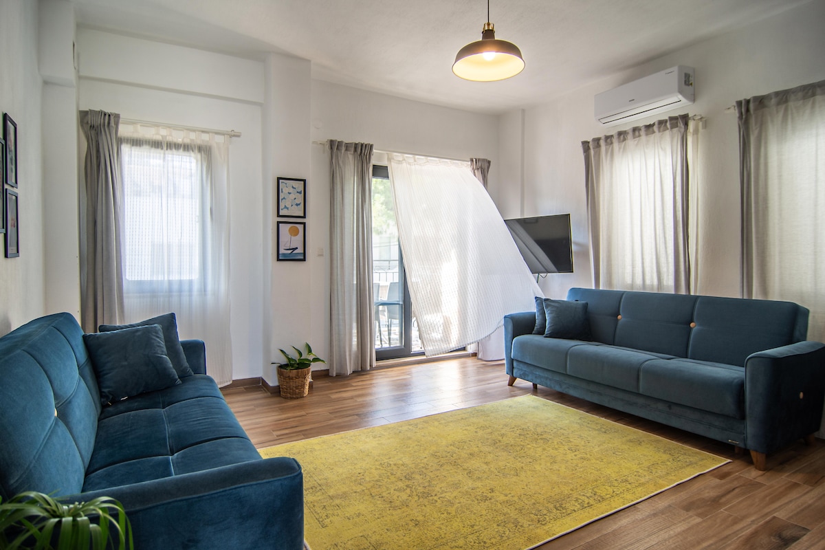 Our villa is positioned at the highest point in town looking down at Datca and its fantastic beaches and harbor. We have a full 180 degree view from every window of the Mediterranean and Aegean sea. We take pride in our cleanliness and professionalism. Come and wake up to an amazing view of this quaint town and bring your BBQ goodies! Our terrace is massive and a great place to host gatherings and get together's. 15min walk from town and 5 min to the nearest grocery store (Migros) and City Hall.