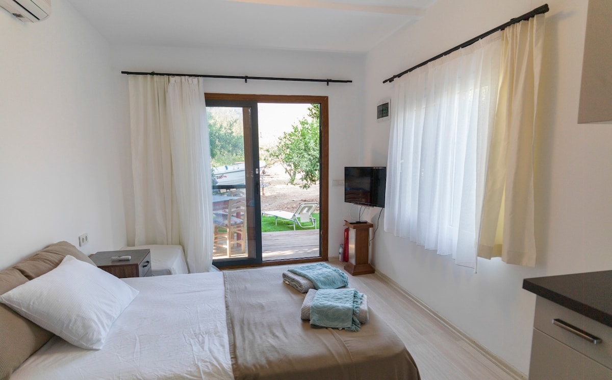 Pavurya House 1 odamız, sınırlı alanı en verimli şekilde kullanabilmek için akıllıca planlanmış olup, her köşe farklı bir işlevi yerine getirecek şekilde dizayn edilmiştir. Minimalist dekorasyon, sade renkler ve çok amaçlı mobilyalar tercih edilmiştir ayrıca, koltuk, yatak, yemek masası ve gerekli olan temel mutfak ekipmanlarına sahip olan odamız, konforunuz için tasarlanmıştır. Limon, mandalina ve nar ağaçlarının arasında konumlanmış olan odamız, denize yürüme mesafesindedir.