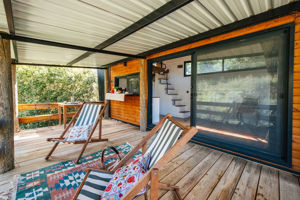 Hayıtbükü/Datça'da yerleşik yepyeni tiny house konsept evimiz denize, restoranlara ve markete sadece 70 metre mesafededir. Doğanın içerisinde huzurlu ve konforlu bir tatil sizi bekliyor.