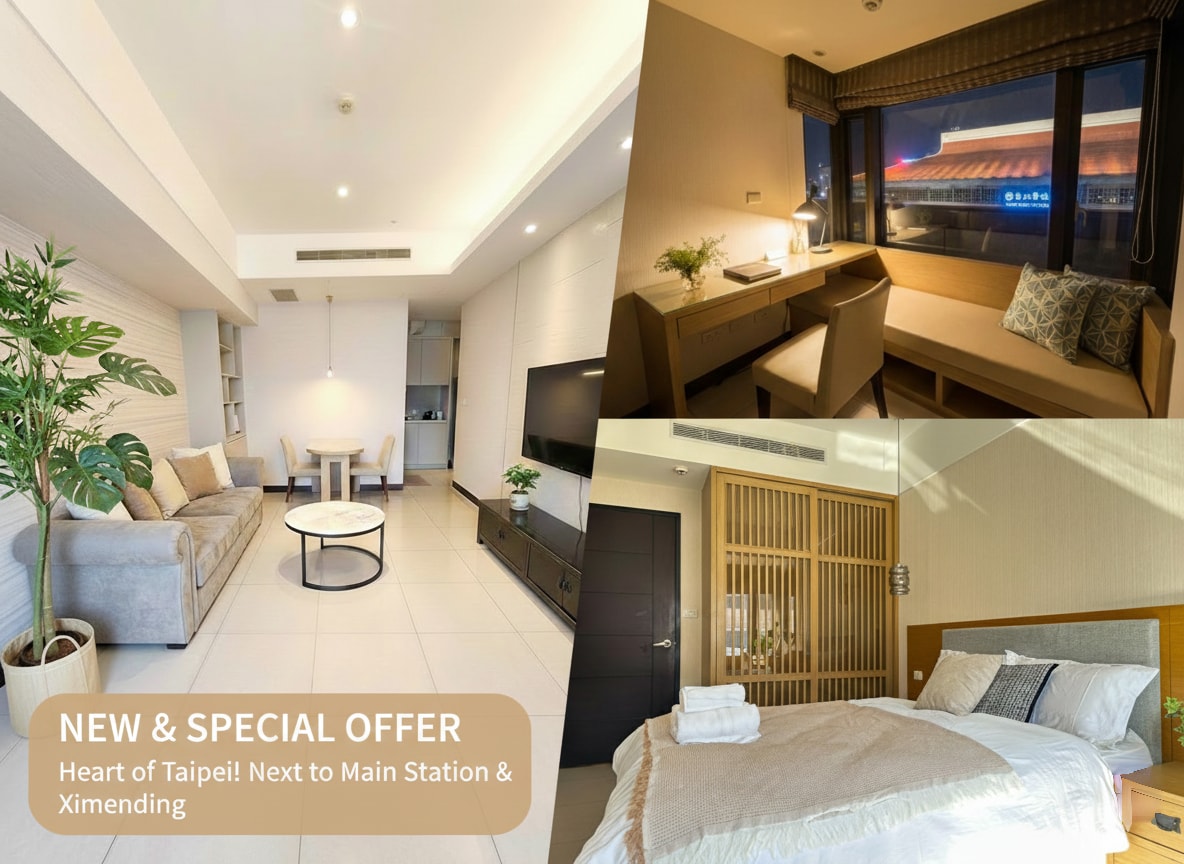 NEW! 眺望台北101電梯景觀2房。台北車站對面,近西門町夜市,機場捷運線。折扣優惠中!