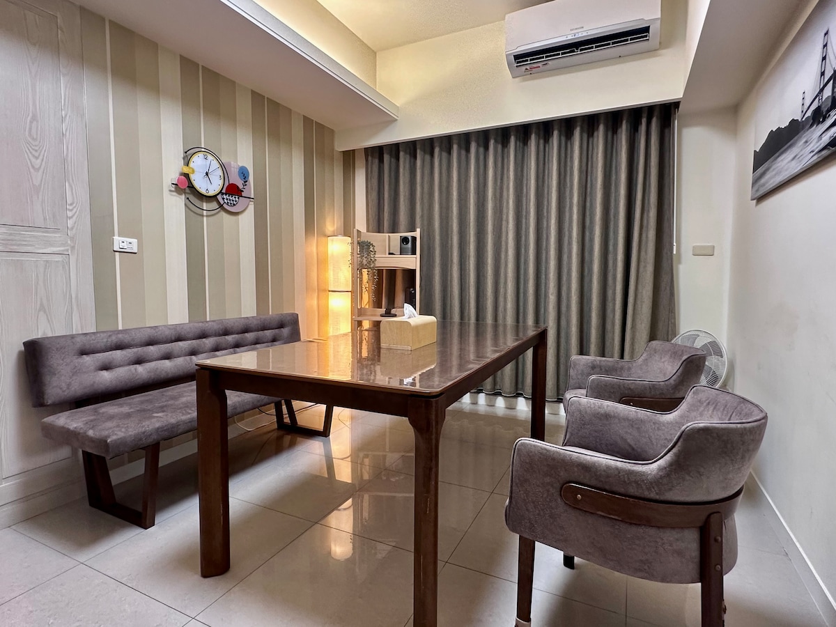Step into this modern 3-bedroom, 3-bathroom apartment, located a mere 1-minute stroll from Taipei Main Station MRT. Embrace the open-space charm of its living room and dining area, complemented by a fully equipped kitchen and more. Separated into 2 suites for additional convenience and privacy, the second suite has a living room and kitchenette of its own. Your comfortable Taipei retreat awaits.