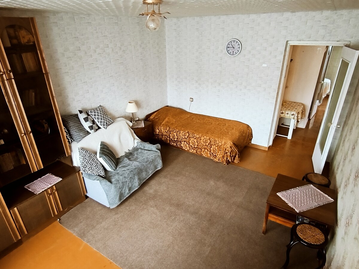 Cozy apartment/studio, for a business person or a couple with a child, the apartment is equipped with everything necessary for the relaxation and comfort of three people. All the necessary infrastructure is within walking distance.
