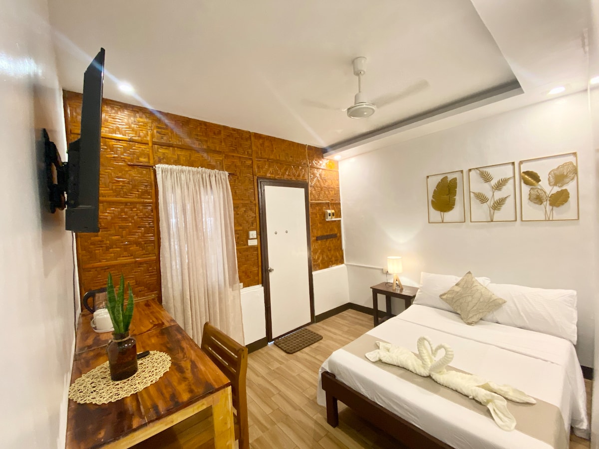 Bing’s Garden 2 is cozy and comfortable, it has 1 living room, 1 bedroom, 1 bathroom and a patio. This unit allows maximum 3 people. • 7 mins drive to Alona beach • 5 mins walk to a local beach • High-speed WiFi • Free drinking water • 1 queen size bed in bedroom • Basic kitchen and utensils (fridge, microwave, toaster, electric hot plate, kettle, rice cooker, pots and pans) • Trike or car services available Enjoy our garden, swimming pool, local beach n have a great stay here!