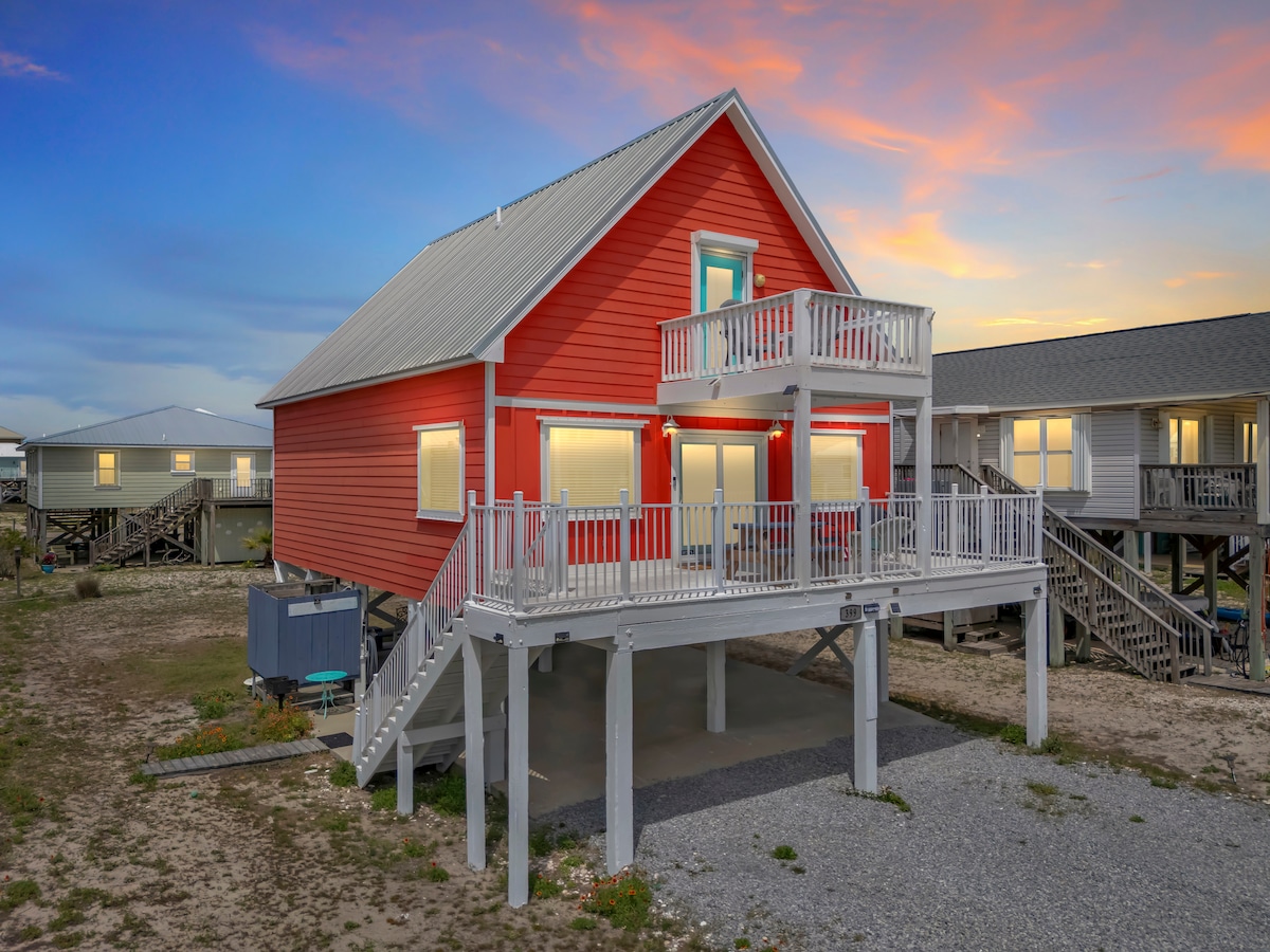 ✔ Directly Across From Beach ✔ All Dogs Welcome, Dog-Friendly Beach ✔ 4 Bedrooms, 2 Bathrooms – Sleeps Up to 10 ✔ Unobstructed Ocean Views from Wrap-Around Deck ✔ Full Putt Putt Course & Corn Hole Under the House ✔ Spacious Deck with Adirondack & Lounge Chairs + Outdoor Shower ✔ Beach Wagon, Chairs, Toys & Boogie Boards Provided ✔ 5 Minutes to Local Restaurants, 20 to Downtown Gulf Shores ✔ High Chair, Pack ’n Play, Linens, Towels & Soaps Included