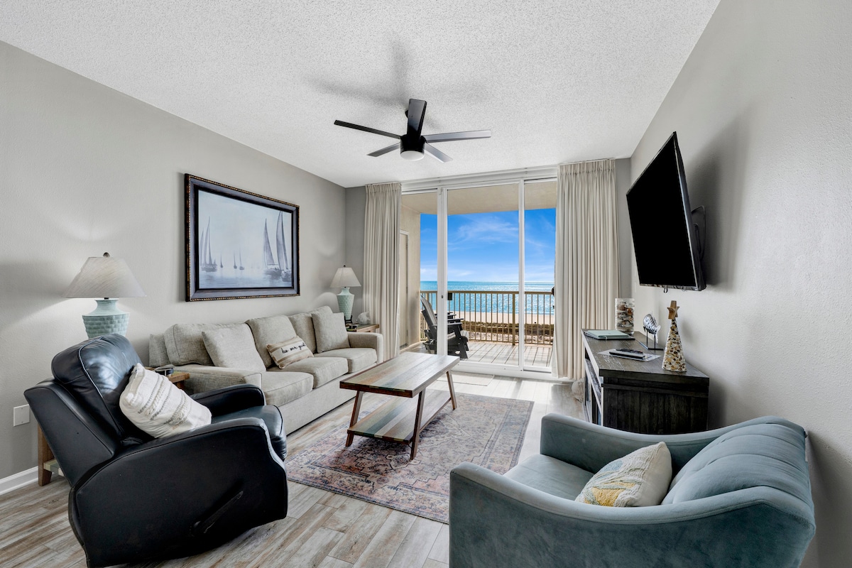 Family friendly DIRECT Beach front condo with great views in every direction of the sugar white beach, natural sand dunes, & beautiful landscaping. From the private balcony you can watch the majestic sun rise & the sunset. Within just a few minutes are many amenities for all ages including outdoor pools, basketball & tennis. After a fun day prepare to make a delicious dinner in the well appointed kitchen, relax with the cheerful decor, large TVs & plenty of space for the whole family.