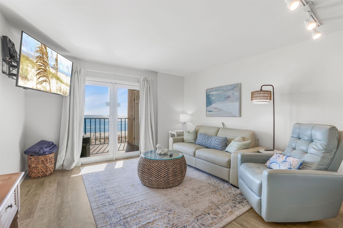 Amazing views! Beach front "Peace in Perdido Key” is a modern, minimalist getaway designed to put you at ease. 2 bd/2.5 ba unit just steps to the white sand & waves. It’s in a private 6-unit building, next to a 2 mile natural state park full of sand dunes, sea oats & wildlife- beach stroll heaven! Soak up the expansive ocean views & sunsets from our top unit’s 2 balconies or from the open floorplan’s many windows bathing you in natural light. Family friendly getaway w/best beach front experience