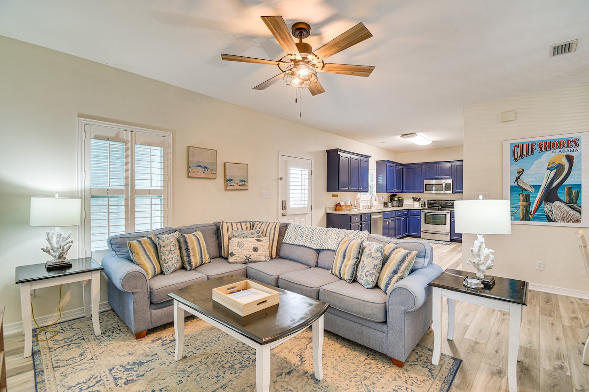 Welcome to Sunny Side! Come enjoy fun and relaxation right outside your back door! Sitting on a calm, shallow cove of Perdido Bay, Sunny Side provides the perfect place for families to swim and play safely. This 2 bed/2.5 bath sleeps 7 people across 4 different beds and includes a full kitchen, laundry, 4 Kayaks, and more! Spend all day here, tucked away from the hustle and bustle, or take a short 5 minute drive to Perdido Key Beach, restaurants, parks, and more! Continue for more Details