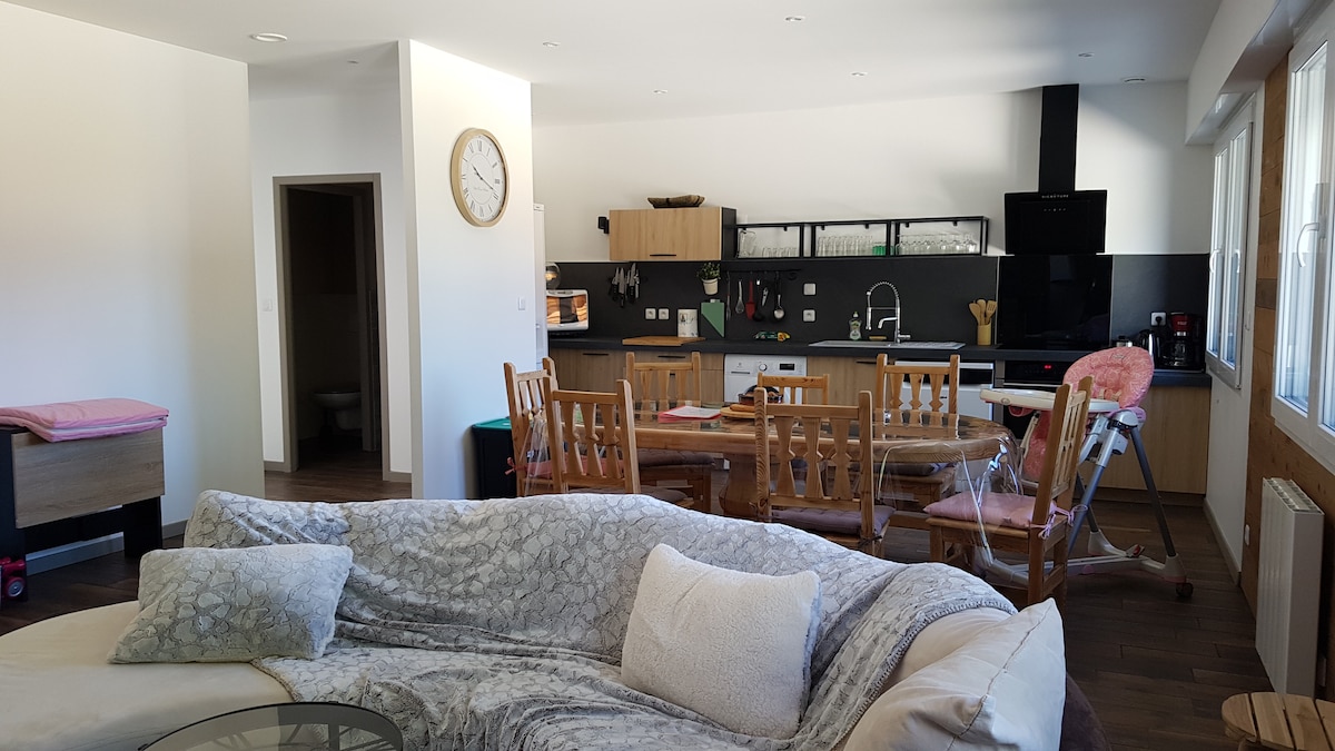 Appartement indépendant avec entrée indépendante attenant à la maison. Logement refait à neuf. Une entrée avec couloir spacieux Une cuisine aménagée équipée avec baie vitrée, télévision et canapé lit pouvant être utilisé pour un invité. Une chambre avec un lit 140 2 personnes avec bureau de travail,placard, penderie avec baie vitrée. Salle d'eau, wc Agréable lieu, reposant....