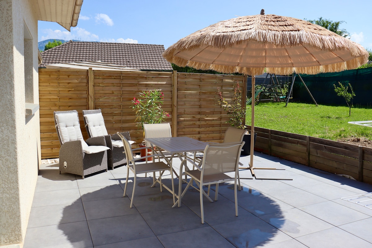 À deux pas du lac d'aiguebelette, nous serons ravis de vous accueillir dans ce logement refait à neuf au rdc de notre maison. Vous pourrez profiter du ruisseau qui traverse notre terrain ainsi que l'accès aux extérieurs. La clim sera un plus pour les chaudes nuits d'été. Vous trouverez à moins de 5min à pied une boulangerie, une pharmacie, un tabac. Et le samedi un marché. Un hypermarché se trouve à 8 min en voiture. Nous nous trouvons à proximité du massif de la Chartreuse, de l'autoroute A43.