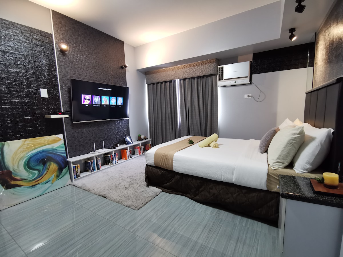 PLEASE READ BEFORE BOOKING: Please be reminded that this is not a hotel, this is a residential condo. We will welcome you as our GUEST, condo/house rules shall be strictly followed. Check-in/Check-out, all concerns, thru your host only. > 50mbps FAST FIBER Internet - PLDT NETFLIX ready (you can use your personal netflix account) FREE PREMIUM YOUTUBE > 55inch big screen TV > Smart Condo Unit WITH ALEXA Important note: This unit is dim, some lights are not yet configured with smart home.