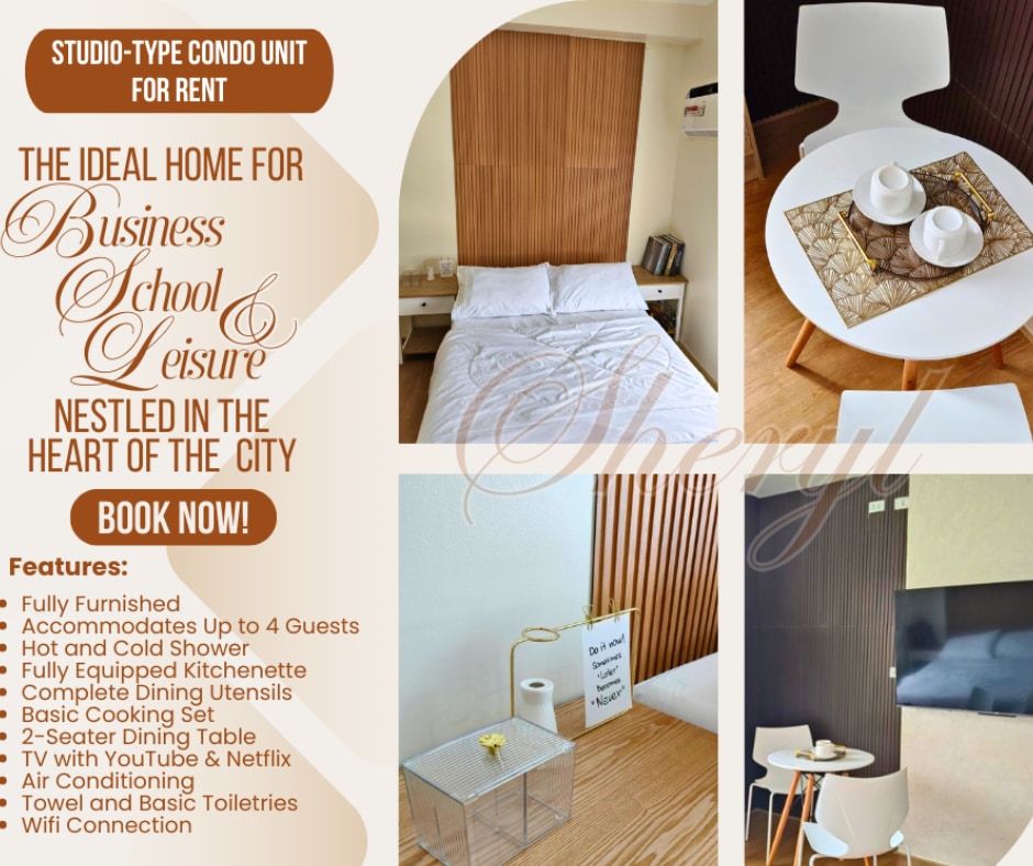 Stylist Urban Condo in the Heart of Davao City. Welcome to your perfect urban getaway! Our chic and modern condo, located right in the heart of Davao City, offers an unbeatable combination of comport, style, and convenience. Whether you're visiting for business or leisure, you'll find everything you need for an unforgettable stay. This studio residential condominium unit is strategically located within Abreeza District, a stone throw away from ayala mall.