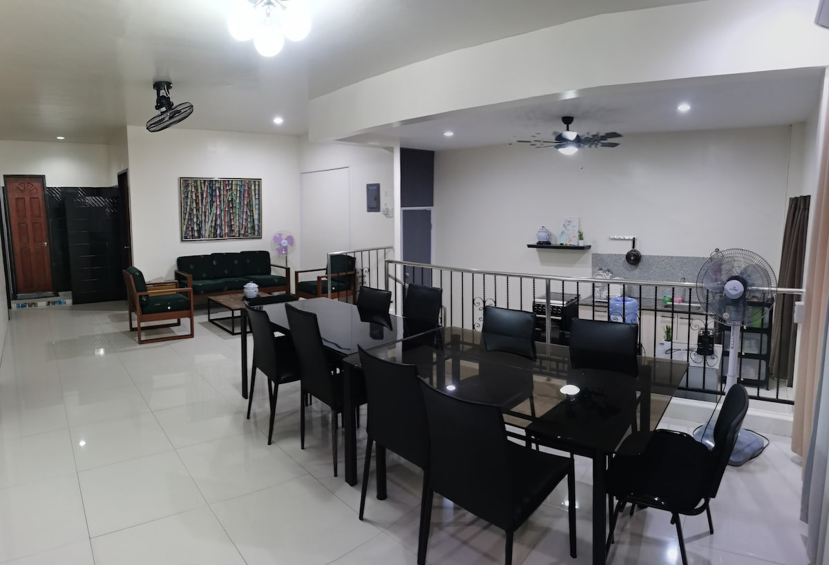 Fully airconditioned and Exclusive space on the spacious second floor with 4 bed rooms. Two rooms have their own bathrooms and two rooms share a bathroom and sink. Large space for Dining, Living, and Kitchen area with Aircon. Ideal for big groups that can comfortably accommodate 10 persons. Toddlers and children below 8 years old are free provided they use the same bed. 5 mins.walk to SM Mall Ecoland, 711, and Day Spa. Big discount for 4 weeks stay or more. Van rental also available.