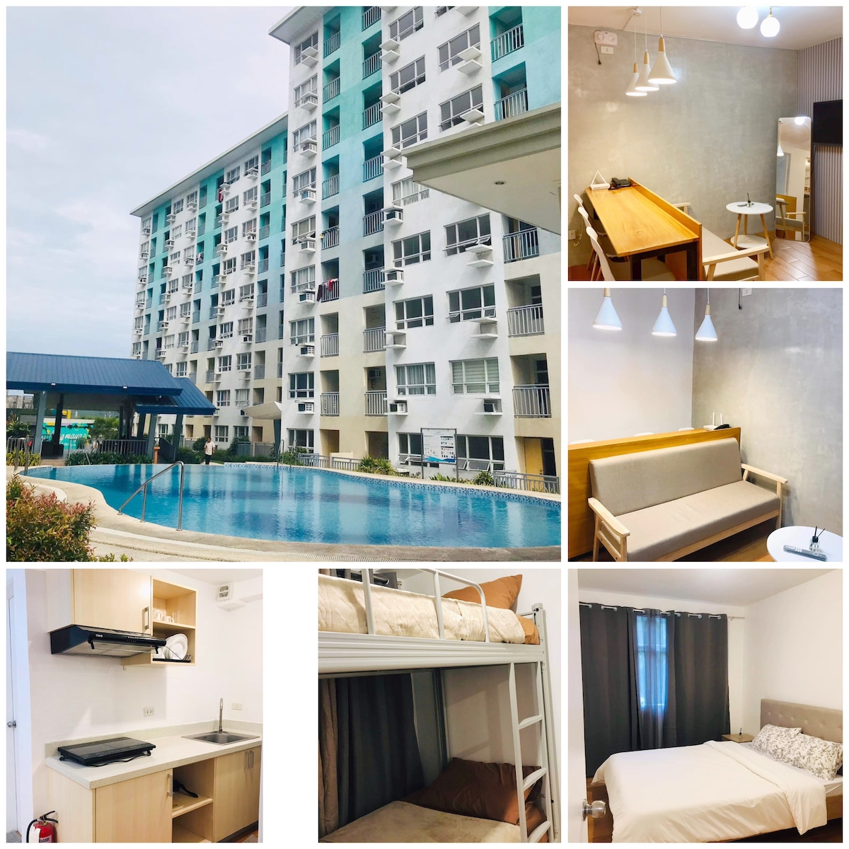 2 Beds & 1 Bath 1 Queen-size Bed, 1 Double Deck & Extra Foam 2 Aircons Large Cabinets 55” & 49” Smart TVs w/ Fast WiFi, FREE Amazon Prime & iWant movies Fridge, Water Dispenser & Purifier & Large Dining Table Shower w/ Heater, Washer 6th Flr Facing Pools and Clubhouses w/ Samal View 2 Elevators 2 Big Swimming Pools w/ Clubhouses Playground Area for Kids & Adults Basketball Court 24/7 Security Paid Parking Available Near Market, Food Stores, 24/7 Stores, Laundry, etc