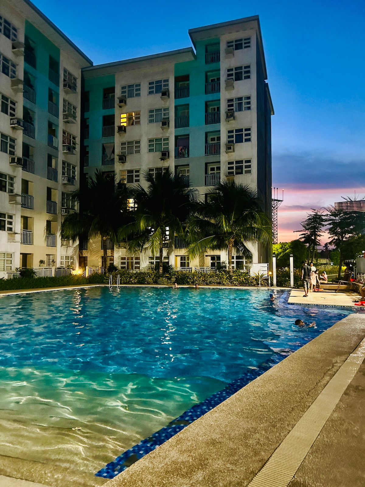 35sqm studio w/ balcony • 200Mbps Wi-Fi • King bed + 2 floor mattresses • Full kitchen + wood floors • Washing machine • Free hot & cold water • Gated condo w/ 24/7 security • 2 pools + playground • 7/11 & market right outside the entrance Nearby (by car): • Samal Ferry – 3 mins • Airport – 8 mins • Dusit Thani – 8 mins • Insular Hotel – 10 mins • Puregold – 7 mins • Azuela Cove – 12 mins • SM Lanang / SMX – 15 mins