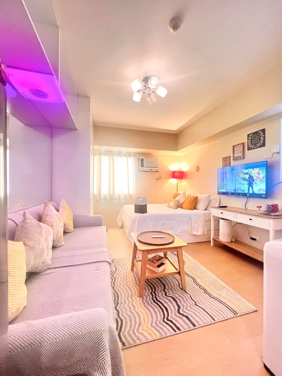 A cozy rooftop (3rd floor) residence in the heart of the city, located near the National Highway and main roads. Very easy to go around to the city: - SM General Santos is 1km away - Plaza Heneral Santos is 850m away - Jacob's Breadnuts is 240m away - Brew Culture is 170m away and many more. Inclusive of: • Airconditioned Room • Beds good for 6 persons – 4 single beds, 1 double bed • Convertible sofa beds to accommodate additional 3 more persons • Complete kitchen, dining and entertainment