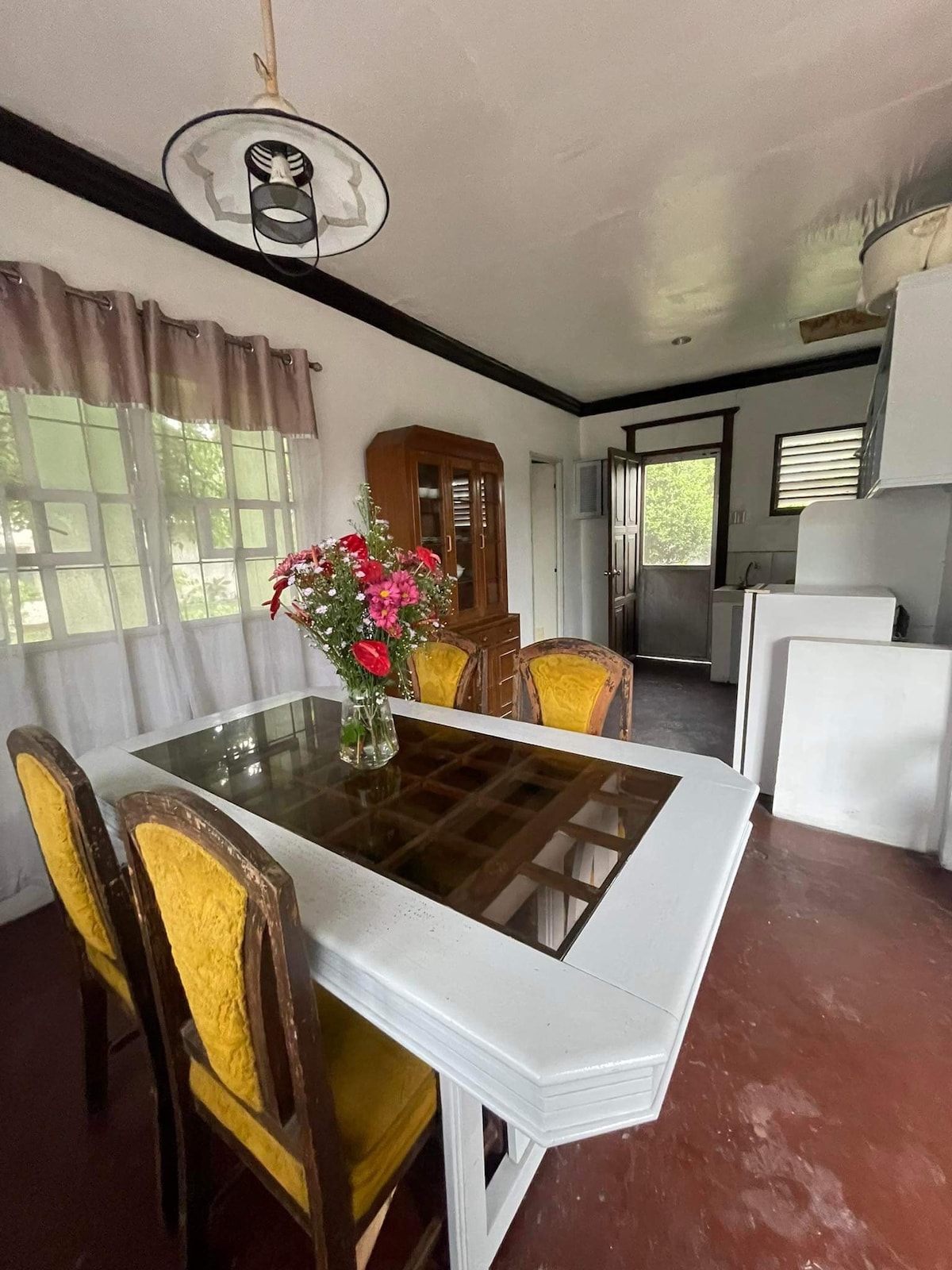 Modern guest suite, a/c, on 2nd floor overlooking the city, built for relaxing convenience, soothing open air winds blowing into the open dining and sitting room, equipped with a/c, hot shower, and a wonderful view of the open air surroundings of the community. Room has sliding doors to open both walls, for optional windy cool nights and fresh air. We have gensets to run 24-hr operations in case of brown-outs.