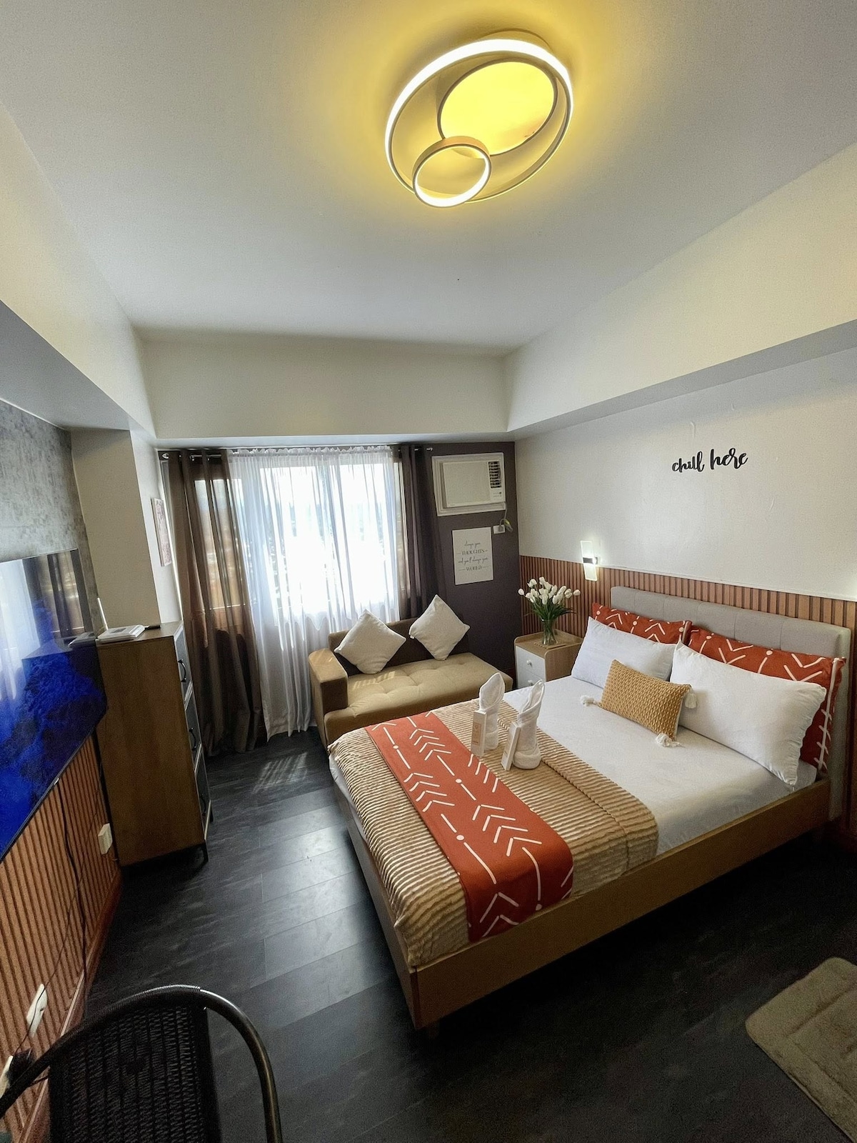 Enjoy your stay in a studio unit at the heart of the city! The place is a few steps to Marco Polo, Royal Mandaya Hotel, Ateneo de Davao University and Aldevinco Shopping Center. Gaisano Mall is just 700m and Abreeza Mall is 2.5 km. And at night, enjoy a 3- min walk to the iconic Roxas nigh market.