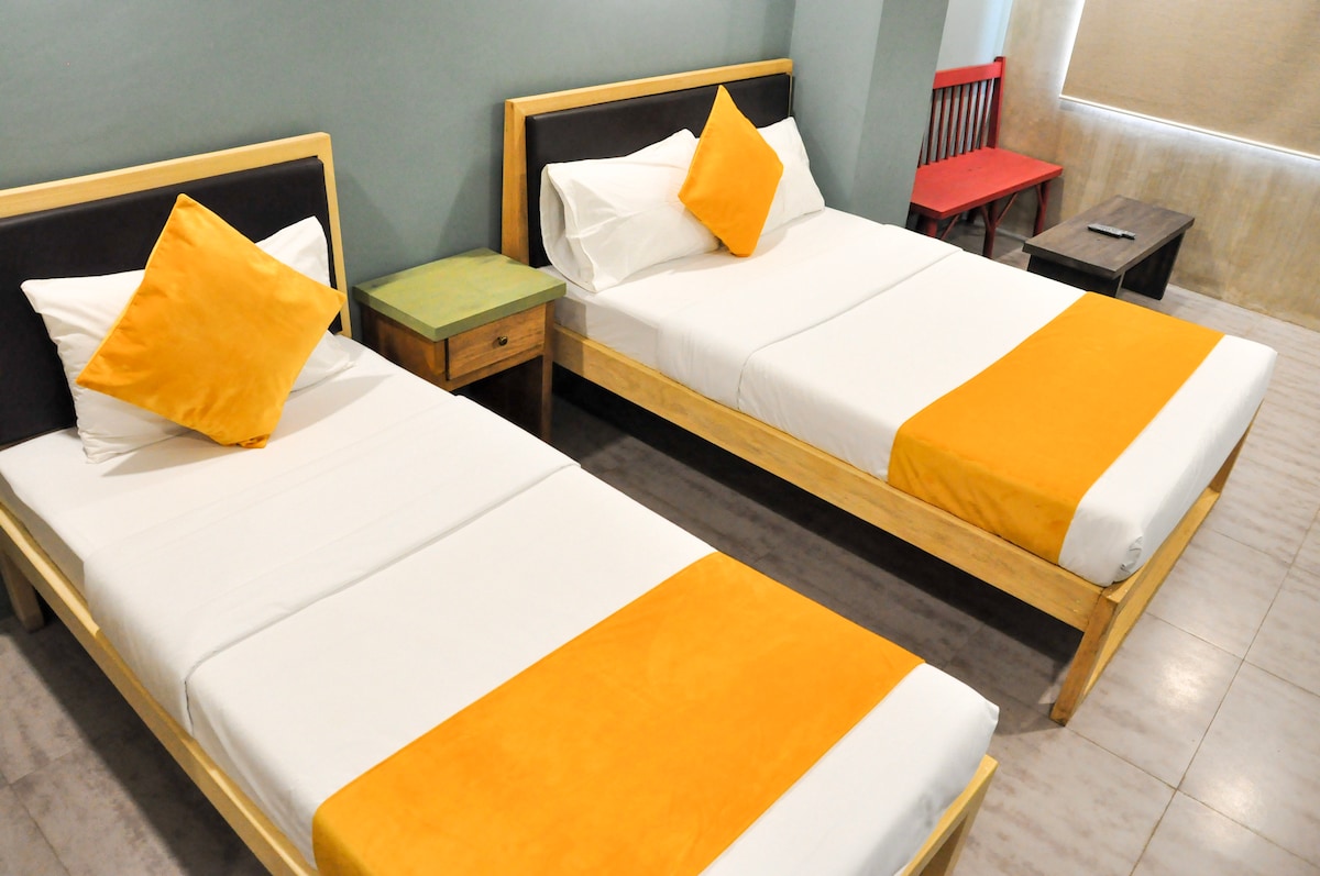 My Hometel has 2 units to choose, the ground floor suited for 2-3 person, and the second floor separate stairs outside good for 2-3 person can add 1 person with addl cost for beddings/towel. Both units an airconditioned. Perfect for couple or family of four who preferred a place like of their own. nearby stores like Jollibee, Chowking, 7eleven, SM savemore, restaurants is less than a kilometer from my place, food delivery is also available.