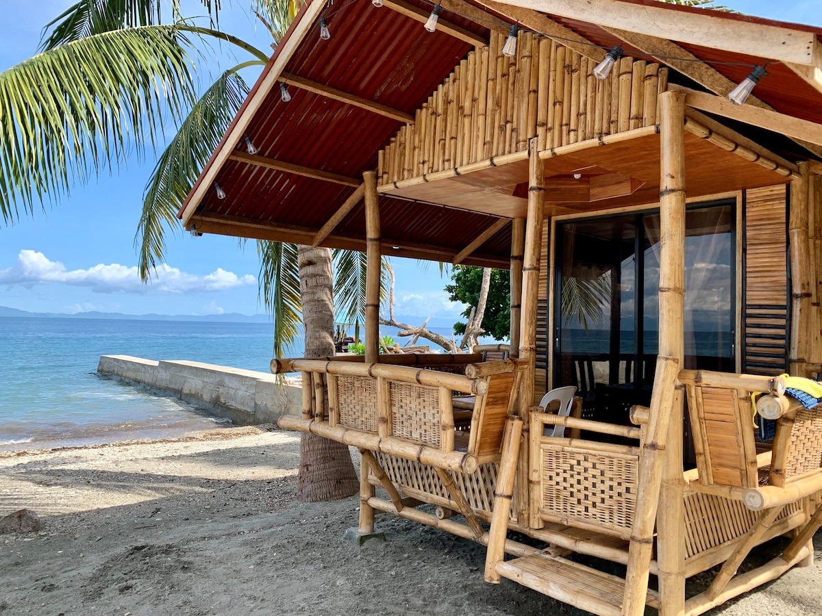 Beachfront bamboo cottage with a/c (bunk II)