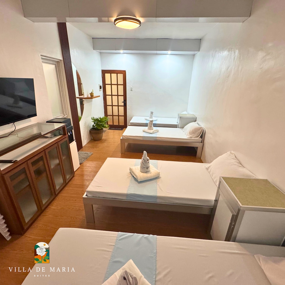 Amethyst Suite is a cozy couple’s retreat made for comfort and calm. Perfect for 2 guests, it offers a 32" Smart TV, free Wi-Fi, and a soothing hot & cold shower with complete toiletries and a hair dryer. The naturally cool mountain climate sets the tone for relaxation and rest. Guests can also enjoy access to Villa de Maria’s serene chapel, pond, gazebo, and gardens—perfect for peaceful mornings, romantic moments, or unwinding amid nature’s beauty.
