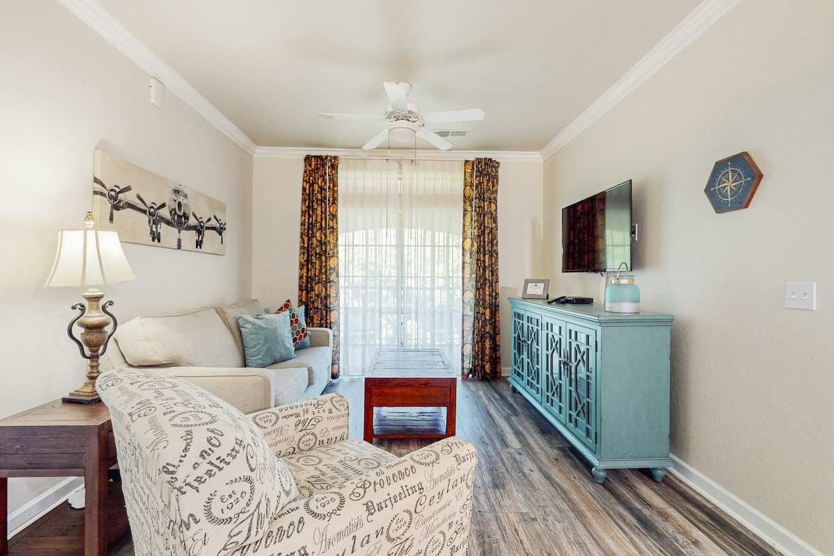 Welcome to our stylish oasis in Kissimmee, which seamlessly blends sophistication with a laid-back vibe. Your stay begins in a professionally cleaned apartment for your full enjoyment. Discover resort-style amenities – a sparkling pool, a fitness center, and hammocks, offering the luxuries of a five-star retreat. Conveniently located with in walking distance of theme parks, restaurants, and shopping. Book now. We can't wait to host you in our little slice of paradise!