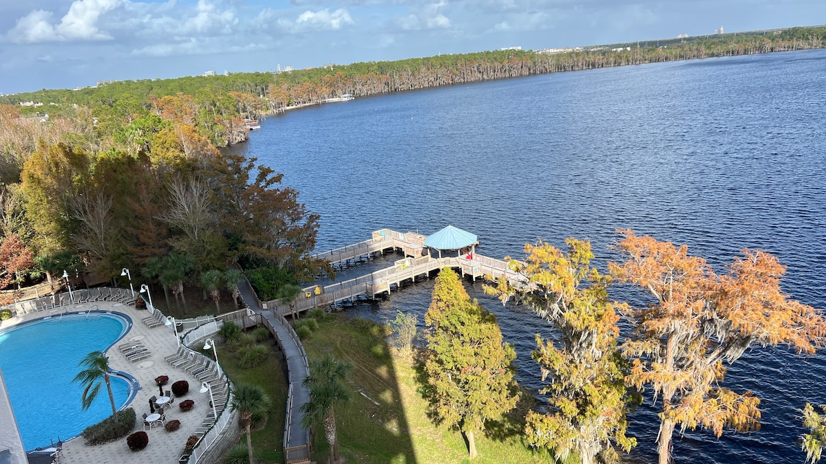 🌴 Unbeatable Lakefront Location | 5 Min to Disney! 🏰 ★ 5 mins to Disney ★ 10 mins to Universal Studios / Seaworld-Aquatica / Orlando Convention Center ★ Unique Lake view from Spacious Balcony ★ Large Swimming Pool and Jacuzzi ★ 24H Reception ★ Free High Speed Wi-Fi ★ Free Parking ★ Cheap Uber (8-12$) Disney/Universal Studios/Seaworld ★ Secured Resort in a safe neighborhood ★ 900 feet (85 m) of Lakefront Footage ★ Fully equipped kitchen ★ Washer & Dryer ★ Gym ★ Water-Sports at the lake