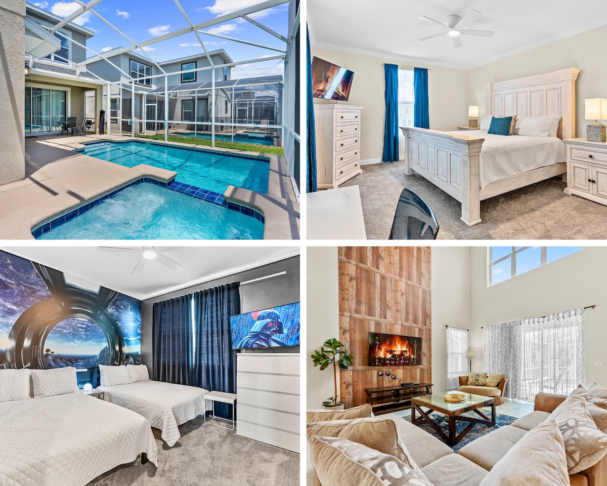 9BR Stargazer Villas Guest Favorite! Your family will love this vacation home in Champions Gate Resort just outside Orlando! Occupancy up to 16 beautifully decorated masterpiece. A short drive to Disney Magic Kingdom and close to attractions, shopping and dining. This villa has a heated pool (no extra charge) to relax in after a day at the parks. Themed rooms featuring Frozen, Guardians of the Galaxy, and Lilo & Stitch bedrooms as well as two primary suites & full size Harry Potter game room!