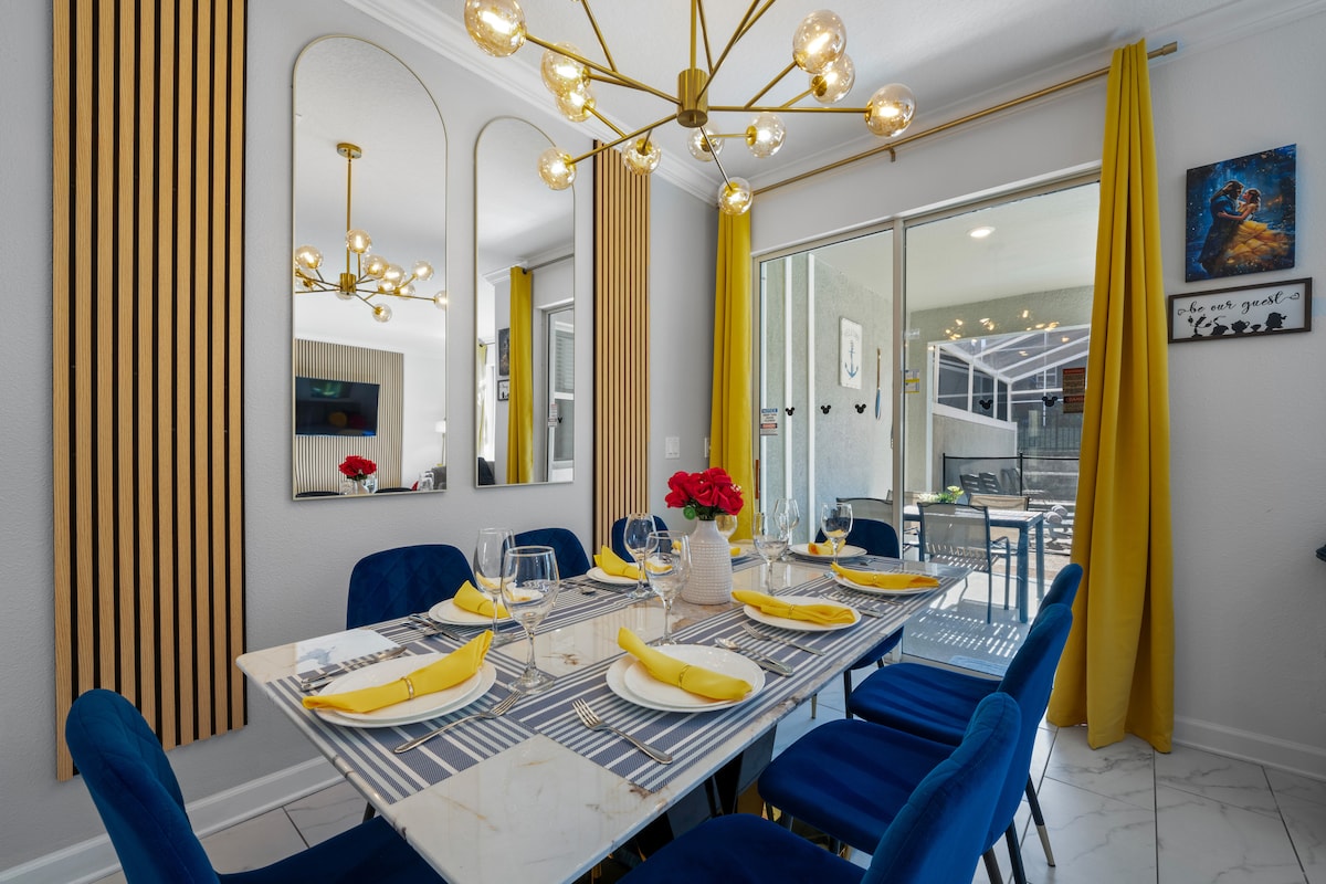Relax with the whole family at this Stylish Magazine Style house in Davenport, just miles from Disney World Orlando Florida Theme Parks, Universal Studios, Sea World and Legoland. Enjoy our PRIVATE POOL and optional WATER HEATER & GRILL. 4 bedrooms, 2.5 bathrooms, fully equipped kitchen, Smart TV's and strong Wi-Fi all around the house. Themed Games Room in the Garage with Smart TV, Full Size Pool Table & Air Hockey. Close to Posner Village Outdoor Mall, Restaurants & Retail stores.