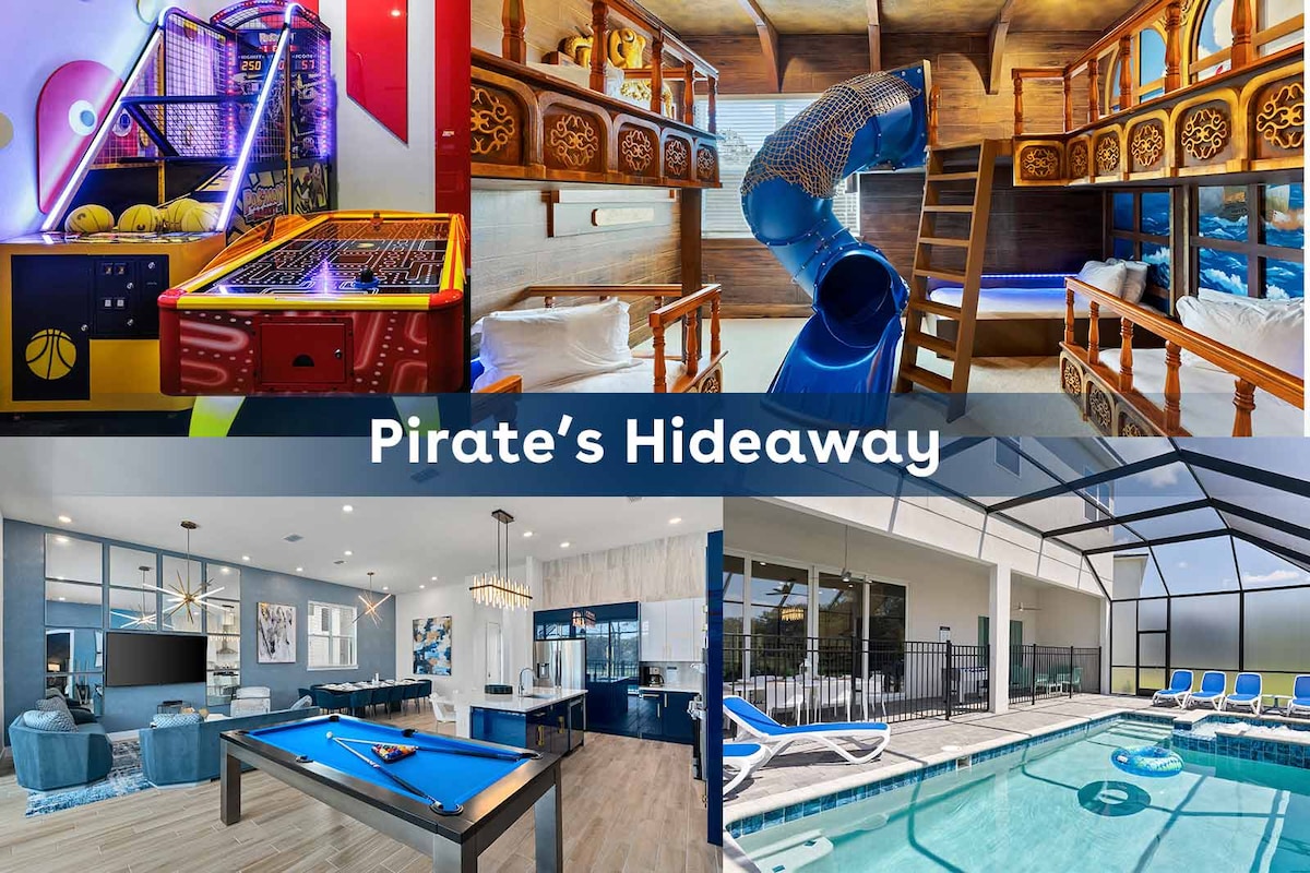 别墅,带海盗主题卧室、影院、游乐中心、泳池和按摩浴缸