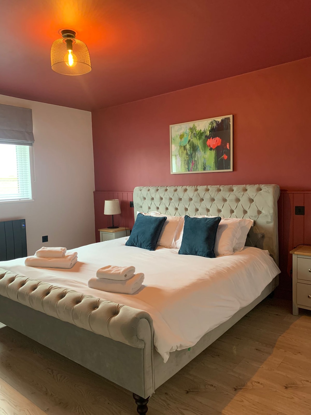 Greylag is a luxury heated lakeside cabin, designed and built on our farm. Curl up under a cosy throw on the super comfortable double bed (400 thread count sheets), or choose from seating areas inside, on the deck overlooking the lake, or by the fire pit with its inbuilt barbecue. Browse the internet using our fast broadband. Your own luxury shower room and toilet is a short walk away. As well as Greylag we have another cabin, Mallard (also on Airbnb).