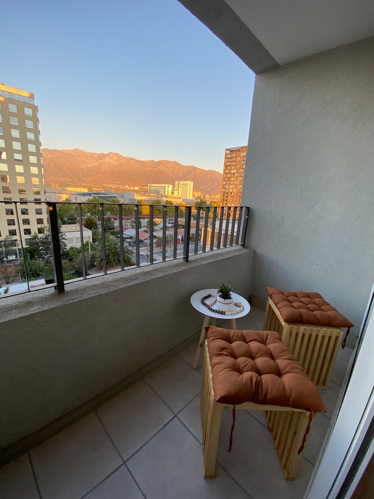 Moderno depto. con hermosa vista cordillera Ubicado en sector céntrico y tranquilo, a 500 mts del metro Bellavista, 700 mts del Mall Plaza Vespucio, 800 mts de Clínica Dávila, 20 min del aeropuerto, 10 min del Estadio Bicentenario y 7 min del Estadio monumental. 1 habitación + sofá cama en el living Cocina equipada Baño privado Balcón con vista a la cordillera WiFi y TV con aplicaciones Completamente equipado Moderno, cómodo y minimalista Piscina, gimnasio, quincho, co-work y salón de eventos
