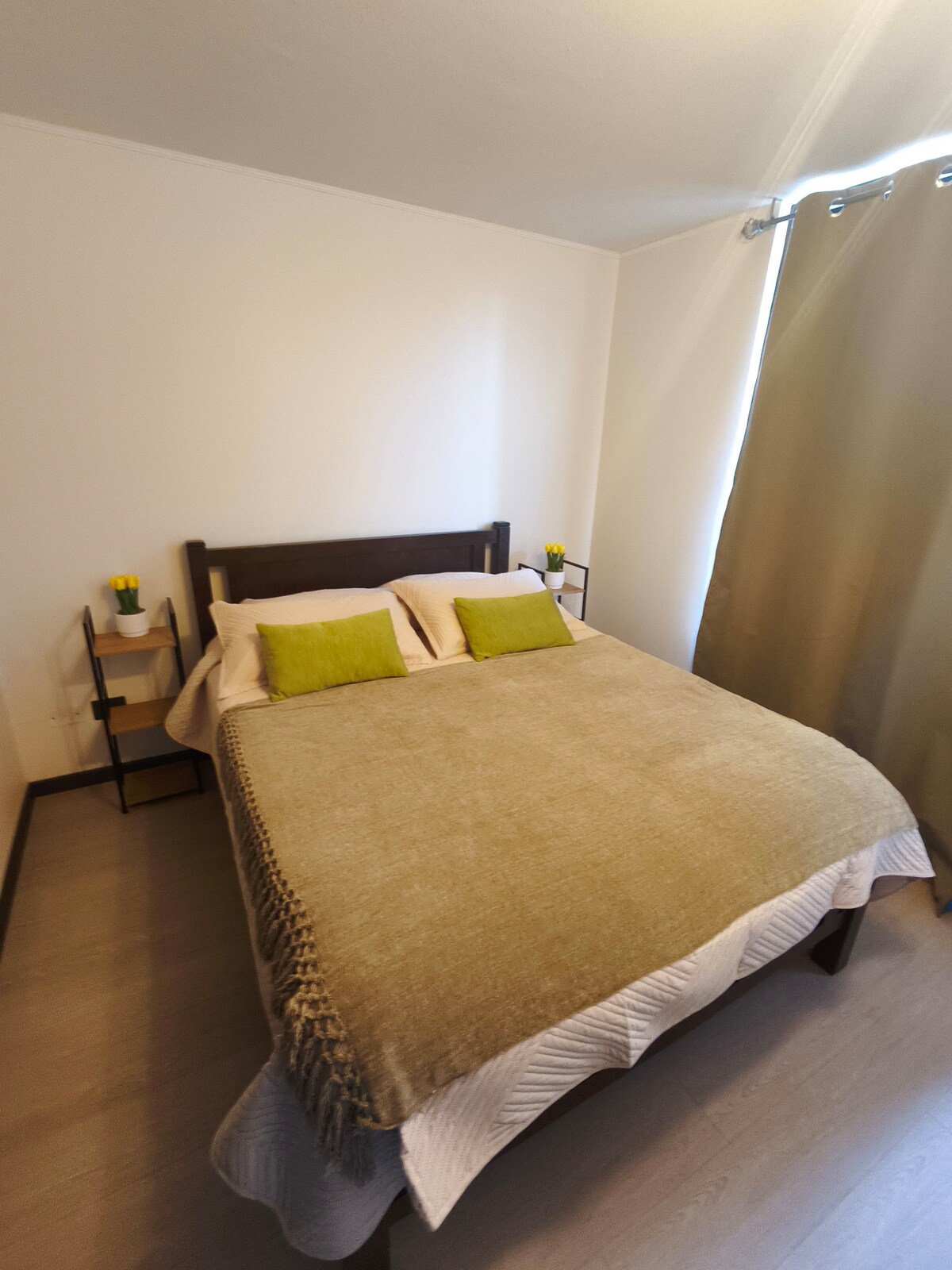 Ideal para estadías por trabajo, estudios o tratamientos de salud. Un espacio cómodo y funcional, perfecto para 2 personas. Departamento de 34 m² que dispone de 1 dormitorio con cama de dos plazas, cocina equipada con todo lo necesario para tu estadía (incluye lavadora–secadora). ✔ Cercano a Metro ✔ Wifi de alta velocidad ✔ Cocina equipada ✔ Edificio con piscina, gimnasio, área de coworking con wifi y conserjería 24/7 ✔ Ubicación estratégica, cercano a Clínica Bupa, mall y estación de metro