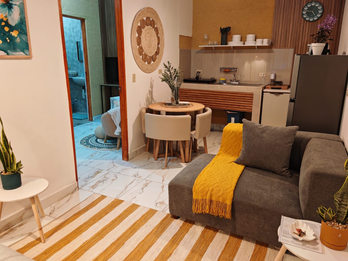 Modern Studio with Kitchen and Laundry Enjoy this cozy, fully equipped studio. It features a full kitchen with a blender, toaster, coffee maker, utensils, and a washer and dryer for added convenience. The queen bed and sofa provide a comfortable space to rest. The bathroom is spacious and modern. Ideal for short or long stays, in an excellent location. Perfect for those looking for comfort and functionality. Book now and feel at home!