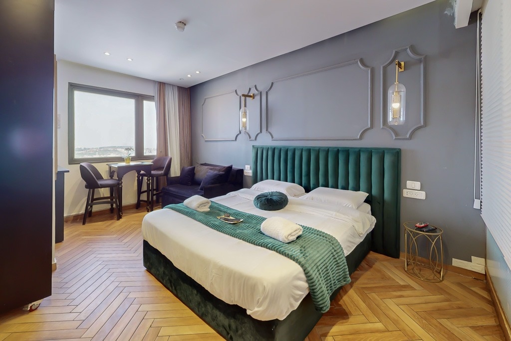 This splendid 1-bedroom apartment, located on the 16th floor of a new and upscale building with elevator, offers an unparalleled blend of modern elegance and comfort. From the expansive windows, enjoy breathtaking views of Jerusalem’s iconic landmarks, including the majestic Old City. אזרחים או תושבים ישראלים, וכן כל אדם אחר ללא אשרת תייר מסוג ב2, יחויבו בתוספת של 18% מע״מ לאחר ביצוע ההזמנה. תיירים נדרשים לשלוח לנו תמונות של הדרכון שלהם ושל כרטיס אשרת הכניסה שקיבלו בביקורת הגבולות בשדה התעופה.