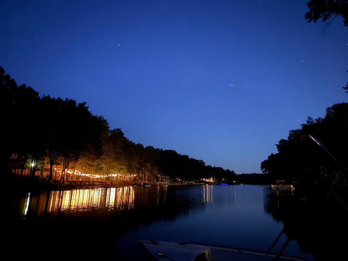 Take it easy at this unique and tranquil getaway. High rock lake front very secluded area of the lake. Private pier and floating dock. We are on a shallow part of the lake at times if it’s dry enough or damns open out pier can be on the ground. 95% of them time we have good water. There are outside cameras and they are off during your stay, but if it makes you feel more comfortable, we leave the blink module in living room you can unplug during your stay just plug back in when you leave.