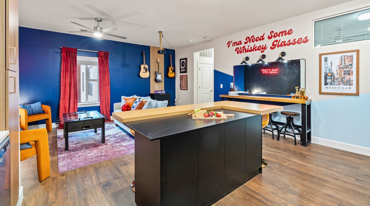 Cozy Home w/ shared rooftop near restaurants, concert venues, bars & cafés! Come enjoy the murals & theater! ✨ 13 min to Broadway & Airport ✨ 6 min to Opryland 🎥 100" Theater Screen 🎨 Instaworthy Murals 🎲 Board Games + Foldout Table & Chairs 🏋️ Shared Gym & Rooftop 🪵 Firepit & Cornhole 🛏️ 3 Beds/3 Baths + Patio 🧺 Washer & Dryer 🎞️ Disney+/Hulu/ESPN+ 🍽️ Full Kitchen - Keurig, Air Fryer, etc 📺 3 Smart TVs 📶 Fast WiFi 💄 Makeup Desk & Wall Mirrors 💨 Pedestal Fans ♿ Accessible Layout