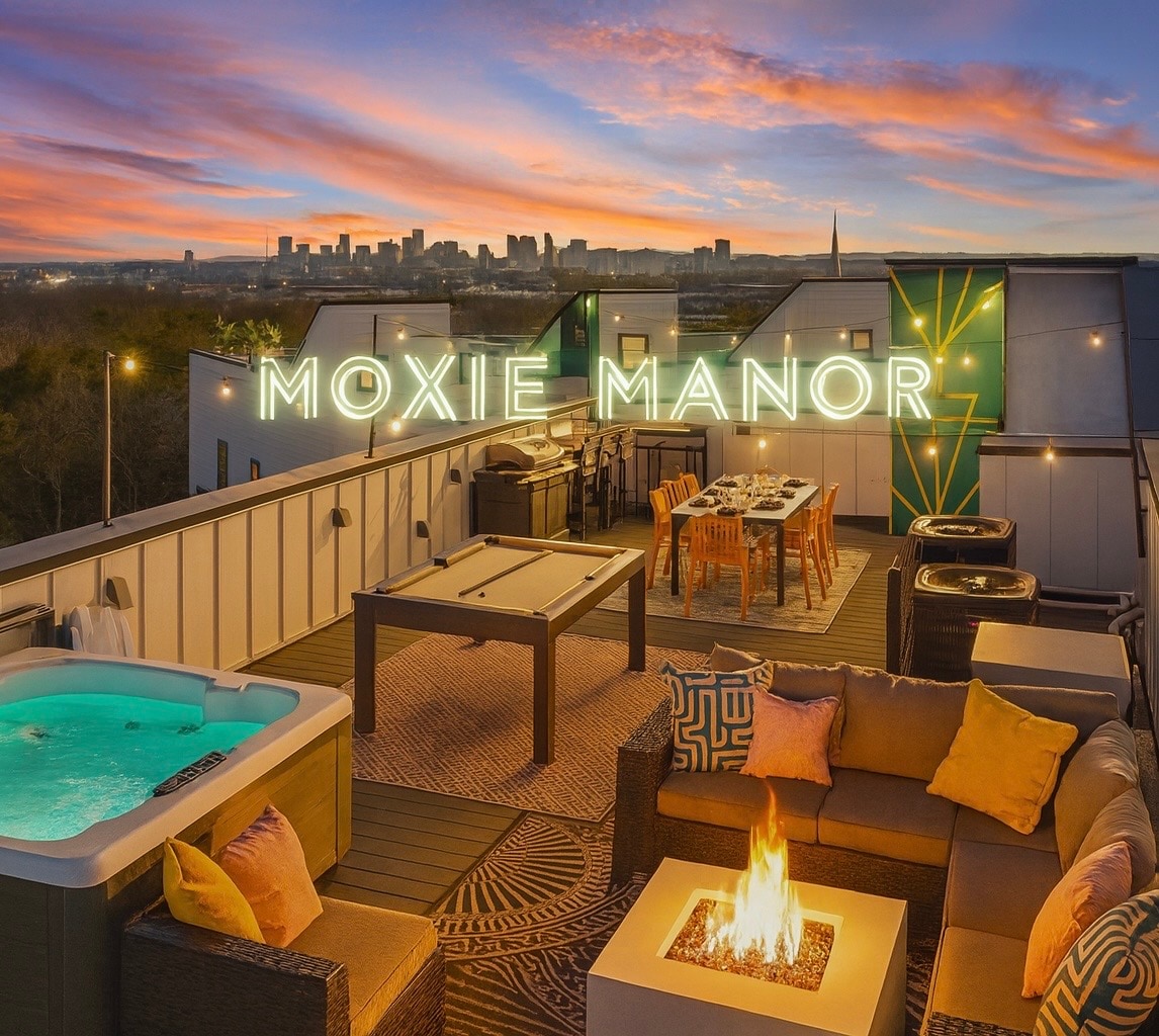Meet your new Nashville vibe. Dip in the year-round heated pool, soak in the hot tub, lounge by the fire pit, and catch skyline views from the rooftop that totally deliver. Just minutes from Broadway, this multi-level pad is your own private city oasis—made for good energy, great photos, and even better memories! Book your stay and discover why we’re one of Nashville’s top-rated Airbnbs—trust us, the hype is real! 🤠